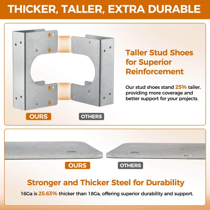 - 🔨INSPECTOR APPROVED: When the size and placement of drilled holes in your studs exceed IBC and IRC code limits, using our stud shoes is a must to reinforce the studs. Our metal stud shoes help you pass structural inspections and ensure codes compliance.