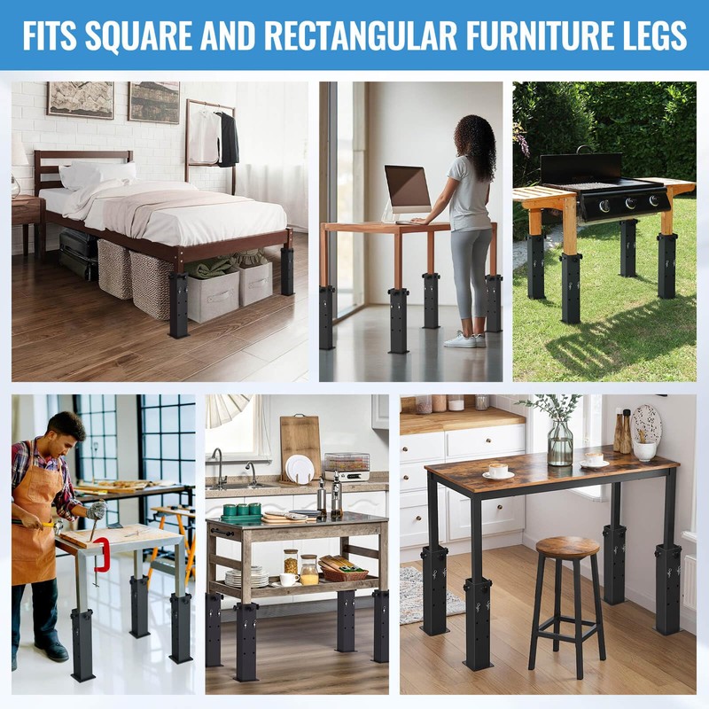 - : Our quality threaded bases and Star Knob Screws are crafted to prevent thread stripping or missing threads, ensuring maximum stability for bed risers. Beyond bed elevation, these bed frame risers are also suitable for other furniture like tables and workbenches. Be sure to verify the riser dimensions to ensure they meet your needs. Your purchase is protected by Transparency.