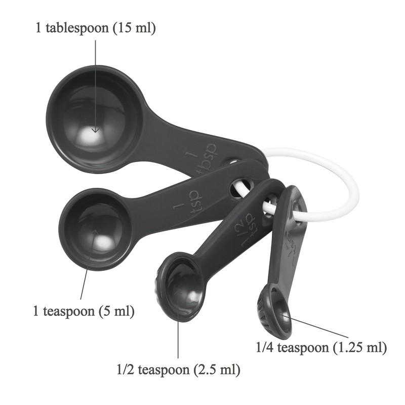 • Essential Sizes for Precision: Includes 1/4 tsp., 1/2 tsp., 1 tsp., and 1 tbsp., covering all key measurements for both liquid and dry ingredients. Ideal for baking, cooking, and seasoning, ensuring you have the right amount every time.