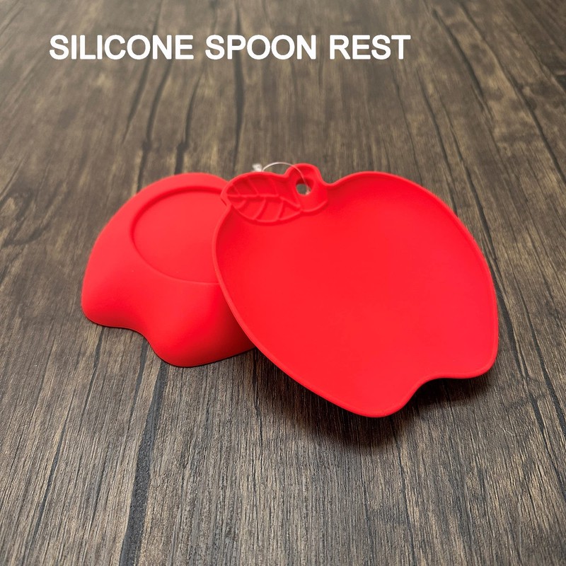 - Tired of making a mess when you need somewhere to lay your spoon or ladle when you're cooking? Not anymore! With our Apple Silicone Spoon Rest, you can put down your spoon or ladle whenever you want with no more mess! Beautiful and durable, a must-have kitchenware and also a nice gift for friends and family members.