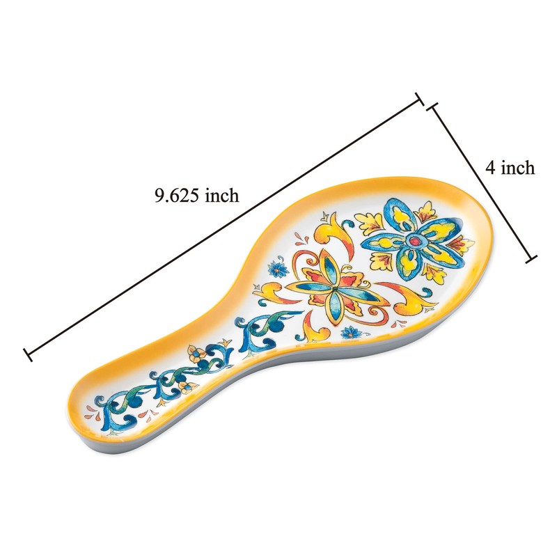Enhance the charm of your kitchen decor with our Chianti 9.625 Inch Melamine Spoon Rest Spoon Holder. This versatile and visually appealing spoon rest features an elegant Chianti design adorned with floral accents, bringing a touch of Italian-inspired sophistication to your culinary space. Keep your kitchen clean and organized while cooking or baking by using this delightful spoon holder.
