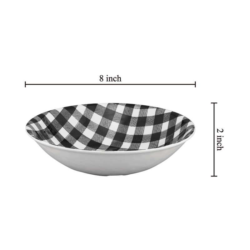 - Classic Gingham Design: The bowls showcase a classic black gingham print that exudes timeless elegance and style. The checkered pattern adds visual interest to your table setting, making it perfect for everyday use or special occasions.