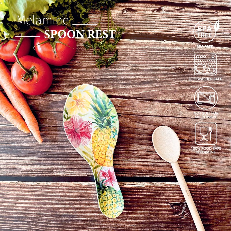 UPware Pineapple Hibiscus Spoon Rest, Spoon Holder for Stove Top, Kitchen Counter, and Dining Table, 9.625 Inch Melamine Kitchen Utensil Holder