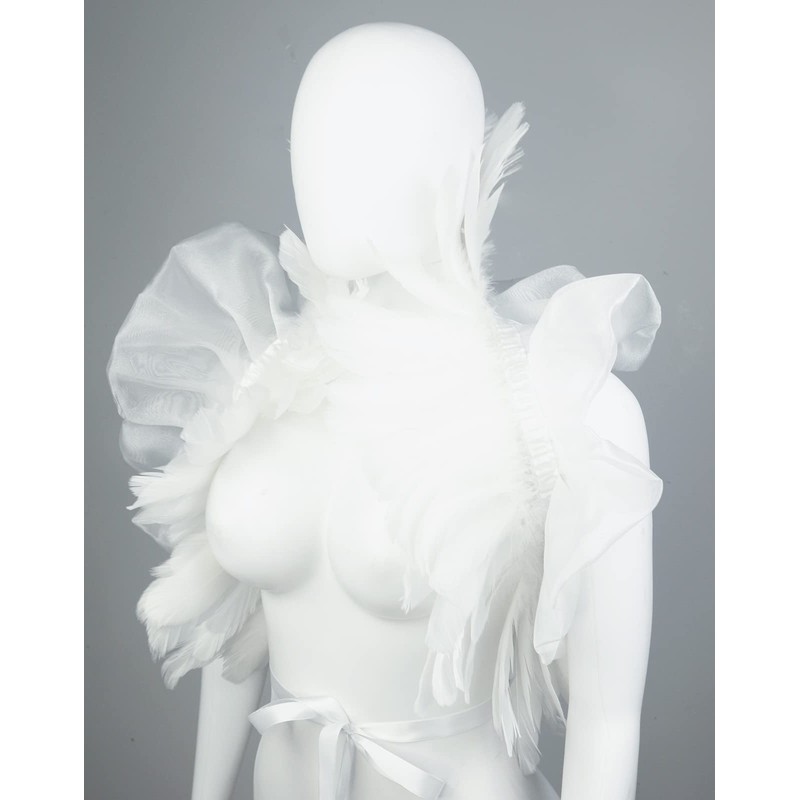 UQJE Victorian Natural Feather Shawl Shrug Shoulder Wrap Gothic Collar Costume Accessories-White