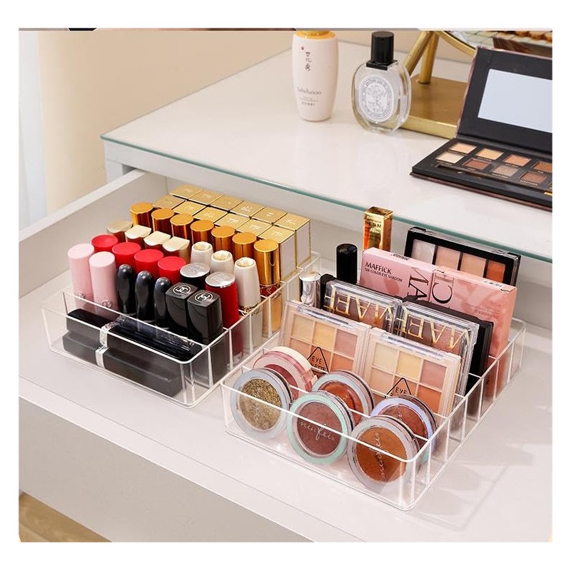 - Transparent and exquisite dressing table organiser: transparent eyeshadow organiser allows you to see directly into your make-up. Sturdy and durable, with smooth edges, waterproof and easy to clean.