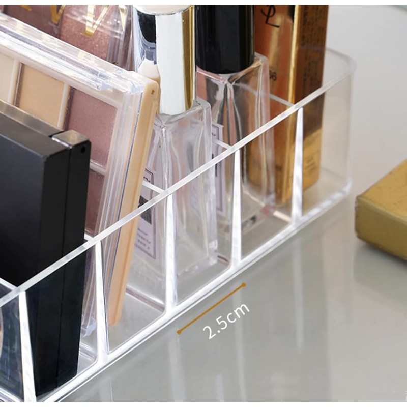 - 7 compartments: make-up container has 7 slots in which you can store your cosmetics by category. Transparent make-up box does not cover cosmetics. It is more convenient to store your cosmetics.