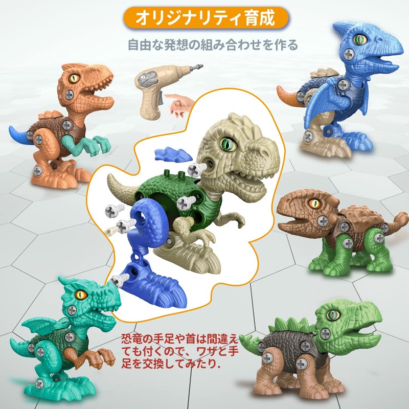 - Buildable Dinosaur: This toy is an idea building toy. Includes 8 dinosaurs and a combination of parts. You can build the original dinosaurs as soon as possible. Easy assembly with included electric screwdriver You can enjoy the dinosaurs and screwing work that are interested in boys. You can also enjoy 8 variations by changing the parts. Enjoy the fun of building and the fun of disassembling. Since it is a dinosaur made by yourself, it seems to be more thoughtful than ready-made products