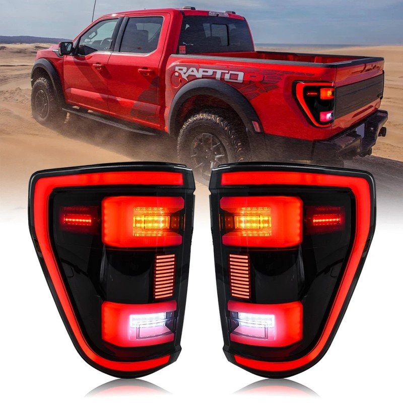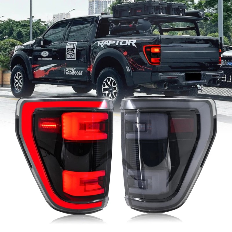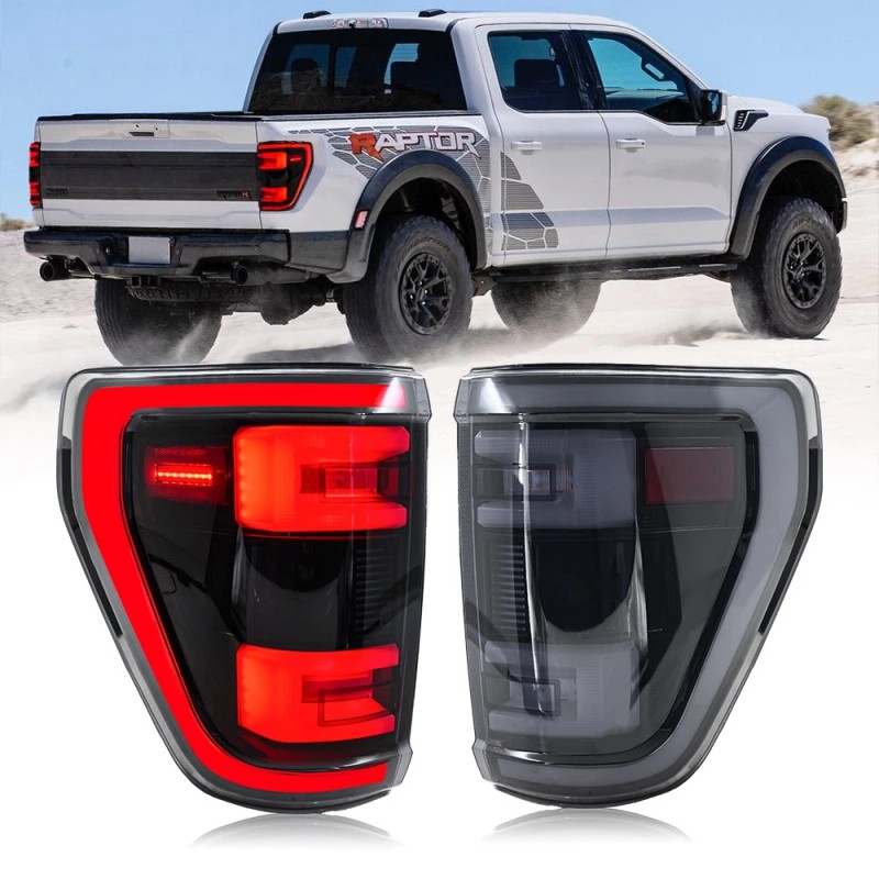 UQZ For Ford F150 XL STX 2021 2022 2023 Rear Lamps Pair Smoked LED Tail Lights