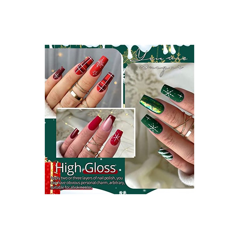 - [Umwelt und gesund]: Unsere UV Nagellack Weihnachten besteht aus Premium-Pigmenten und Naturharzen, die ungiftig und umweltfreundlich sind; Es wird benötigt, um durch UV/LED-Lampe ausgehärtet zu werden und mit Basis und Deckschicht zu verwenden, der Effekt ist besser, wenn der gleiche Markengrundschicht verwendet wird; Es wird empfohlen, eine UV/LED Lampe mit einer Leistung von 36W oder höher zu verwenden