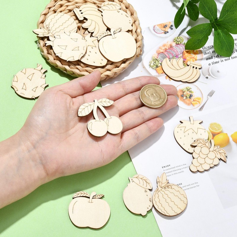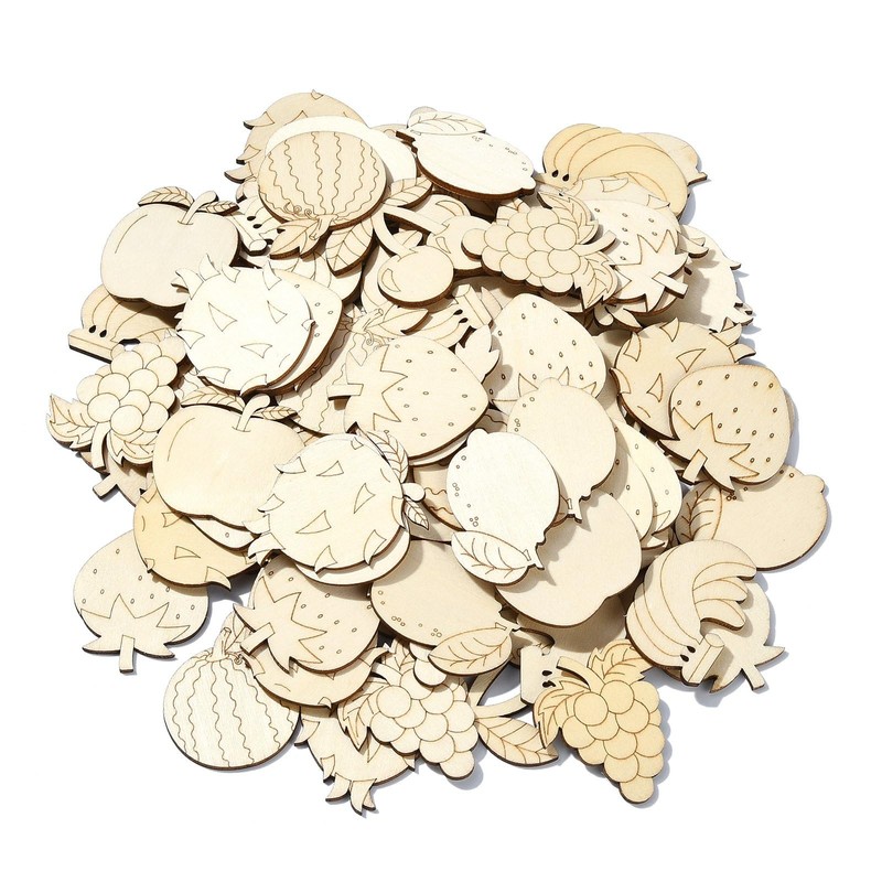 UR URLIFEHALL 100 Pcs Unfinished Wooden Cutouts Fruit Wood Shapes Painting Wooden Crafts Wood Cut Out Shapes Fruit for Home Graden Decor for DIY Painting Projects