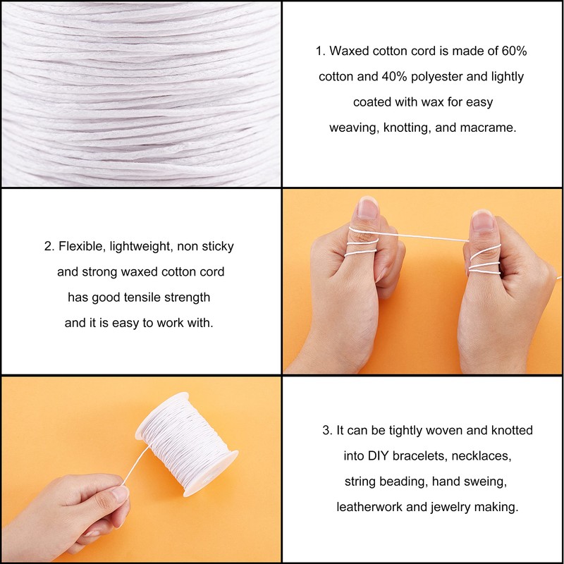 - ♛Waxed Cotton Thread Cords Design: This cord is easily knotted and braided just like hemp but with a clean look and feel. Use it as the base of a large-hole bead design, braid with it, use it in macrame, and more. It would make the wonderful start of a stylish choker or bolo style necklace.