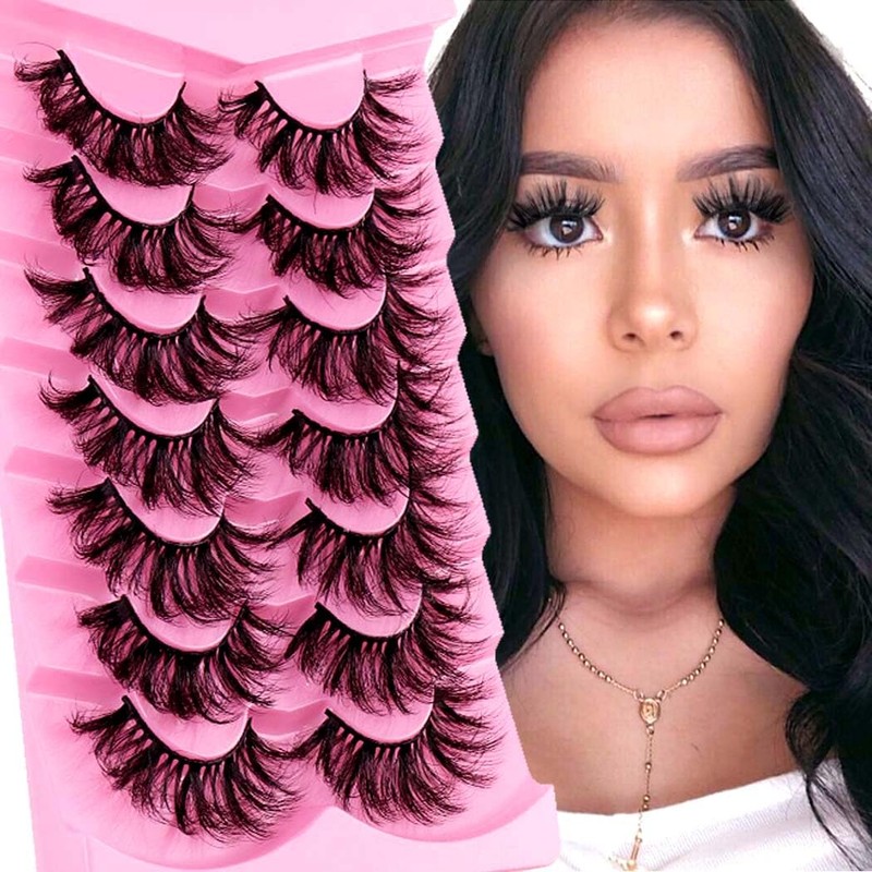 Uranian False Eyelashes Fluffy Faux Mink Lashes Dramatic Long Eye lashes 20mm D Curl Extensions Strip Lashes 7 pairs Volume Fake Eyelashes for Women and Girls