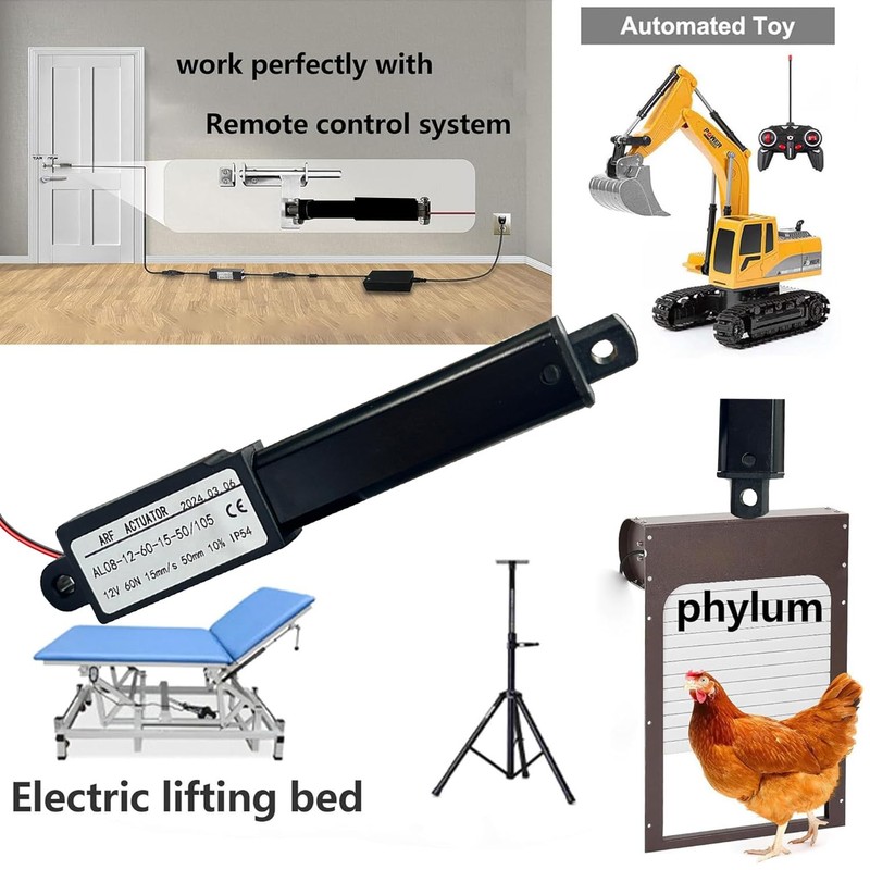 • 4.Wide range of applications: The motion linear actuator is suitable for DIY chicken coop doors,home automation,fan blades, robot grippers,toys,cabinet doors,toolbox,drawer locks,3D printers,automatic snow blowers, Rc truck trailer etc