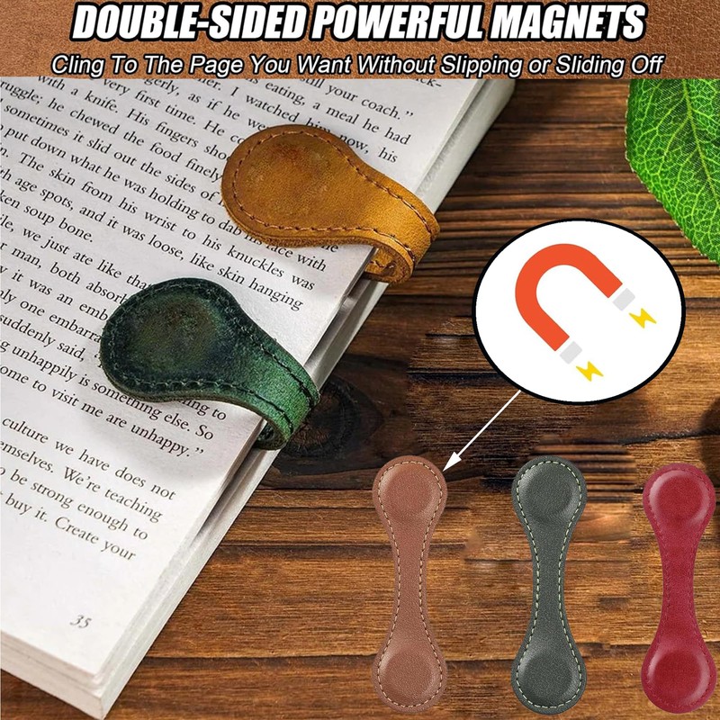 - 5.What you get: You get 1pack of clear reading book holders with 3 magnetic leather bookmarks (red, vintage green, brown); Tip: Our flexible leather magnetic bookmarks are designed for one-way folding, providing strong magnetism in the right direction