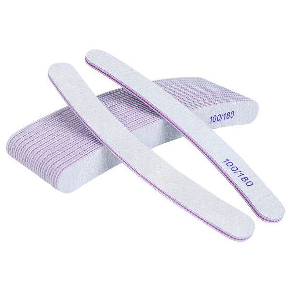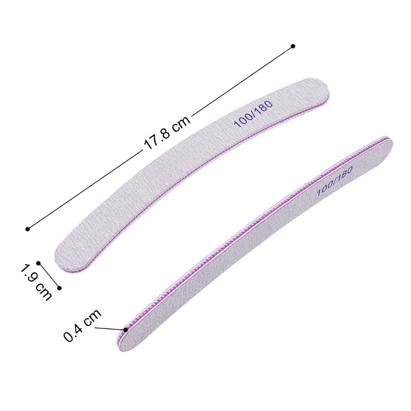 - 💅 【Double-sided Grit】These nail files are double-sided, the two sides have different grits. One side is 100 grit, suitable for nail shaping and styling; the other side is 180 grit, used to polish the gel seal.