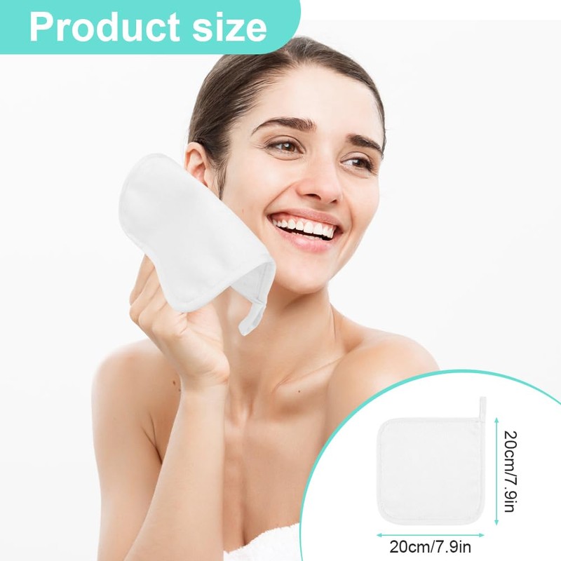 - 【Easy to Clean】Both sides of our makeup remover cloths can be used. Makeup wipes are hand or machine washable. Eco-friendly face wipes that can be reused many times. Simply dampen these washcloths with warm water, squeeze out excess moisture, and massage gently over face in circular motions to effortlessly remove makeup, dirt, impurities, and oil.