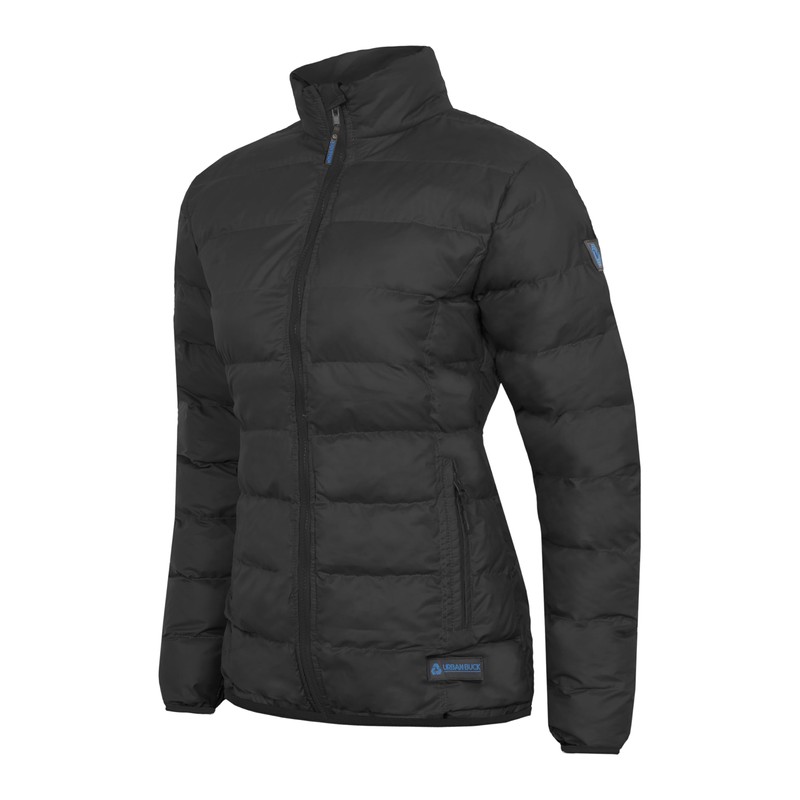 URBAN BUCK Packable Puffer Jacket Women without Hood – 32 Degree Lightweight Travel Winter Plain Puff Foldable Jacket for Women – Ellie Black Quilted Water-Resistant & Repellent For Outdoor (XL)