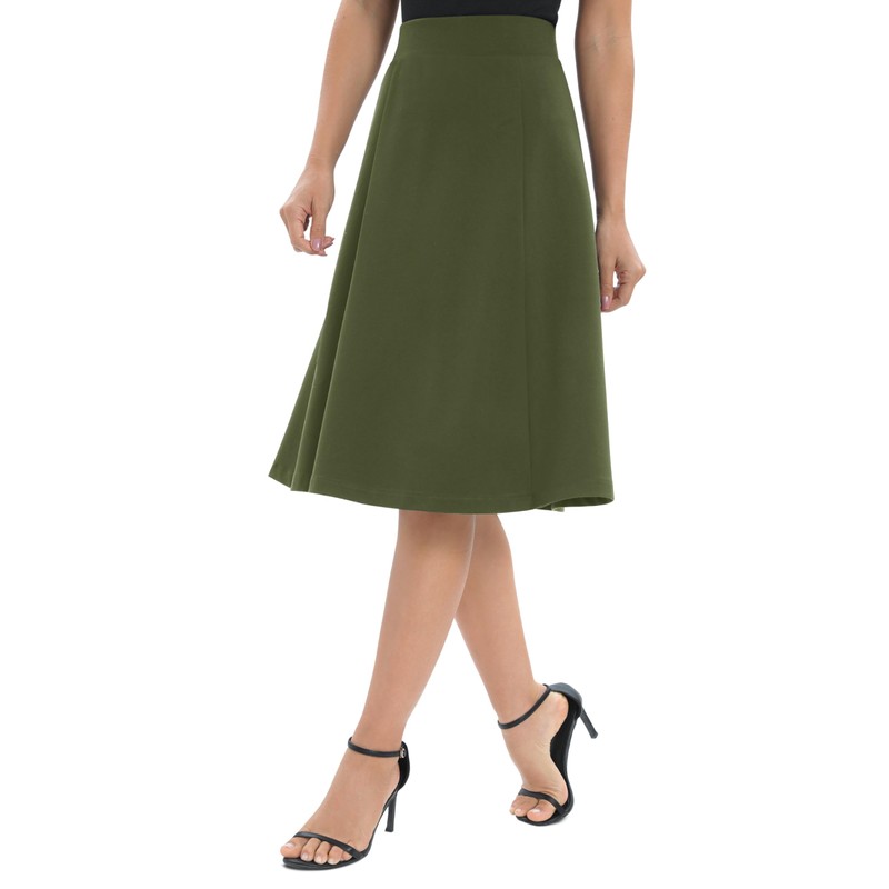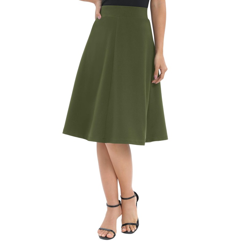Urban CoCo Women's A-Line Elastic High Waist Flare Work Midi Knee Length Stretchy Skirt, Army Green, Medium