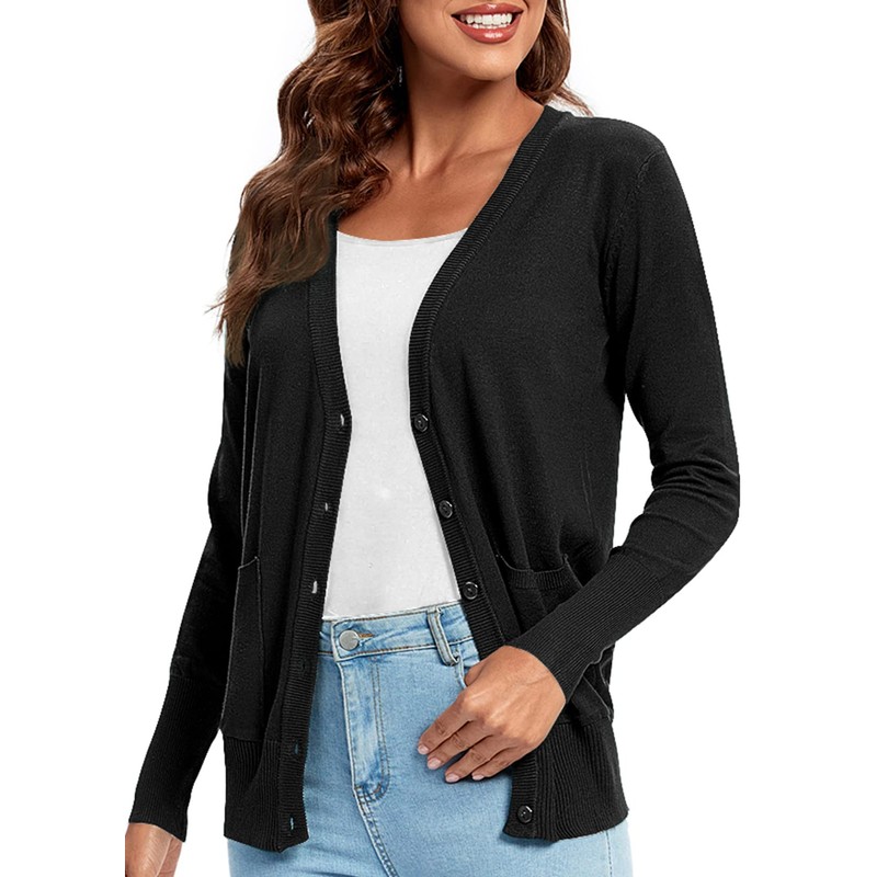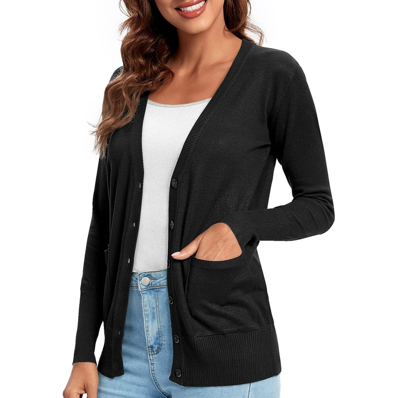 Urban CoCo Women's Button Down Lightweight Knit Cardigan Sweater with Pockets (M, Black)
