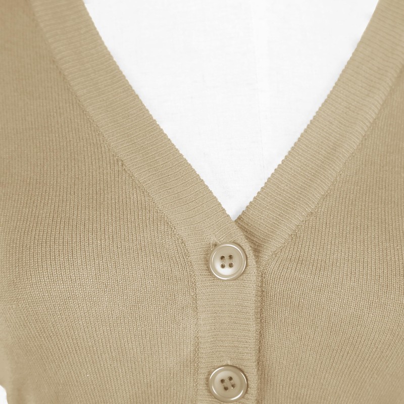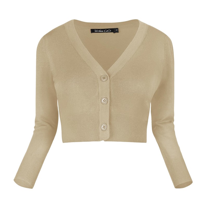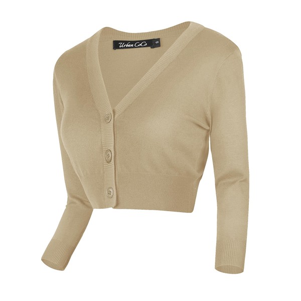 Urban CoCo Women's Cropped Cardigan V-Neck Button Down Knitted Sweater 3/4 Sleeve (Camel, XL)