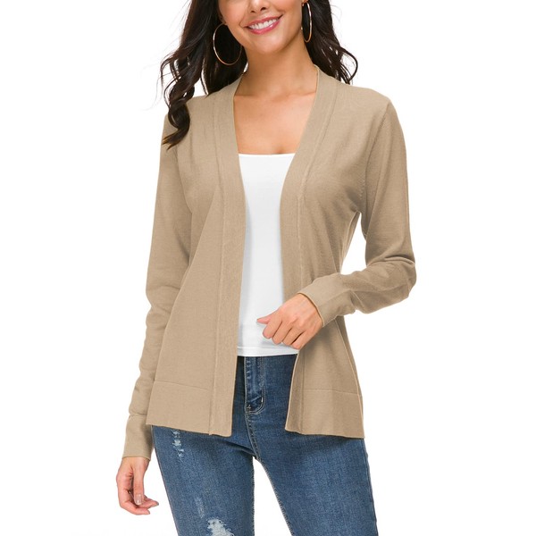 Urban CoCo Women's Long Sleeve Open Front Knit Cardigan Sweater (L, Apricot)