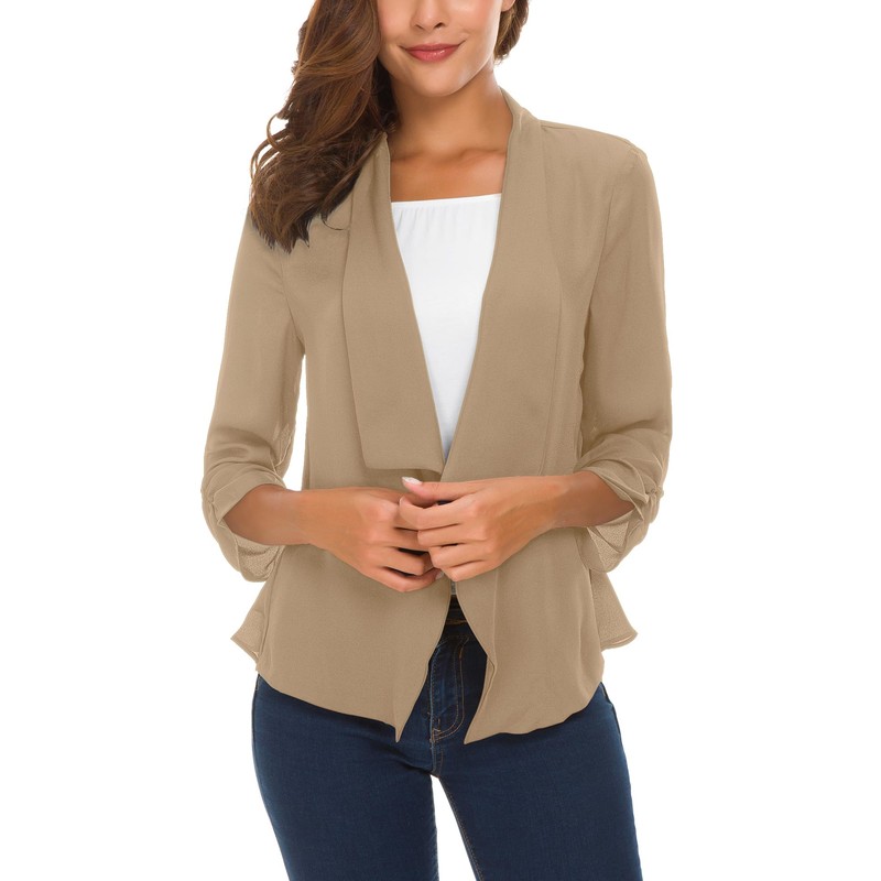 - Easy to match clothes,it's super easy to turn any outfit into a classy corporate wear when you have this lightweight chiffon blazer in your closet