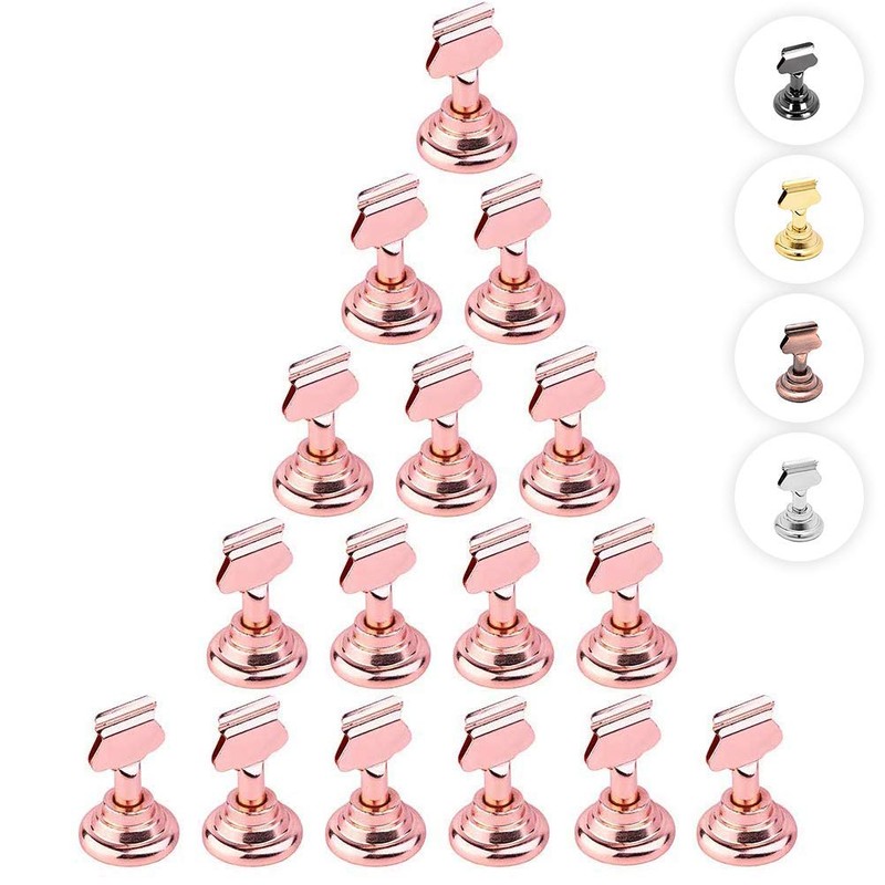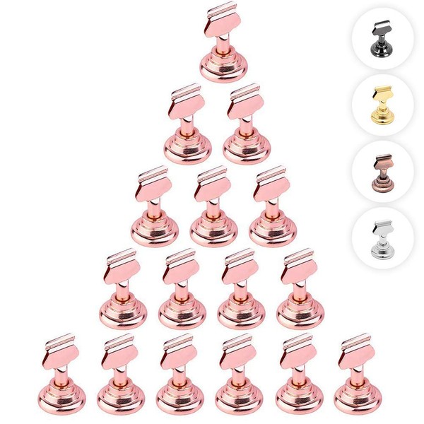 Urban Deco Wedding Table Numbers for Wedding Reception, Gold Table Number Holders for Weddings, Menu Holder Dual Sided Steel 1.6 Inch Pack of 16 Picture Holders for Tables (Rose Gold)
