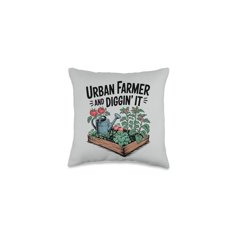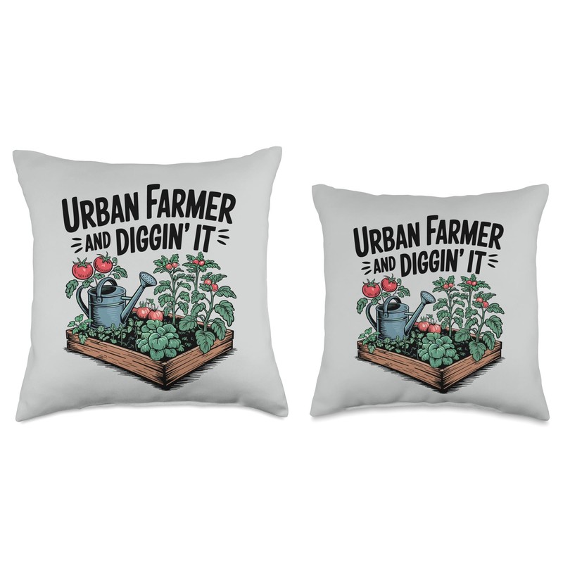 Urban Farmer and Diggin' It Funny Tomato Gardener Gardening Throw Pillow