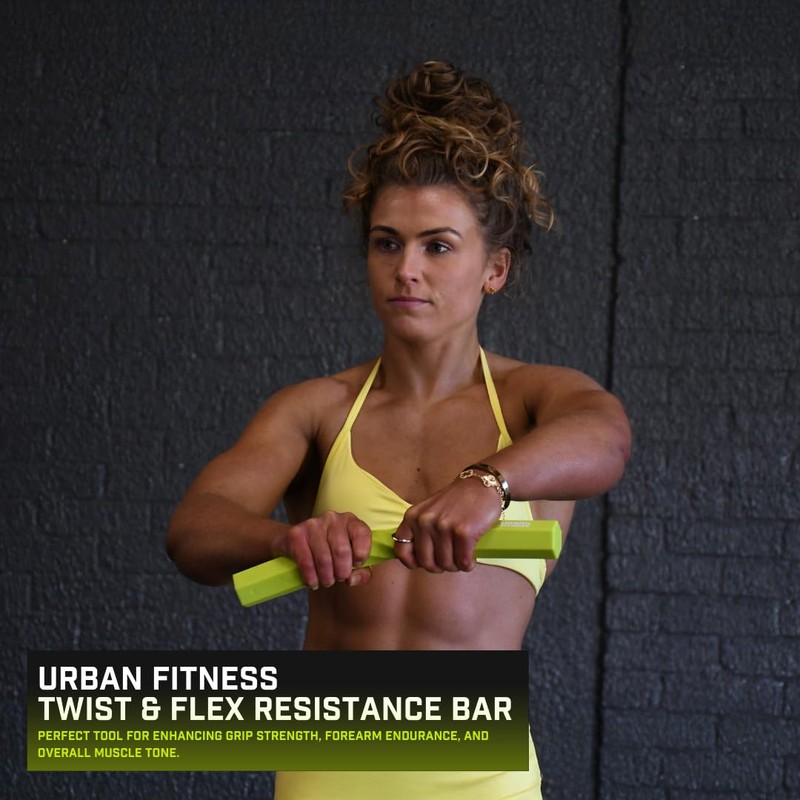 Urban Fitness Twist and Flex Resistance Bar, Durable Rubber for Grip Strength, Muscle Tone, Rehab Wrists and Elbows Training, Fluo Yellow