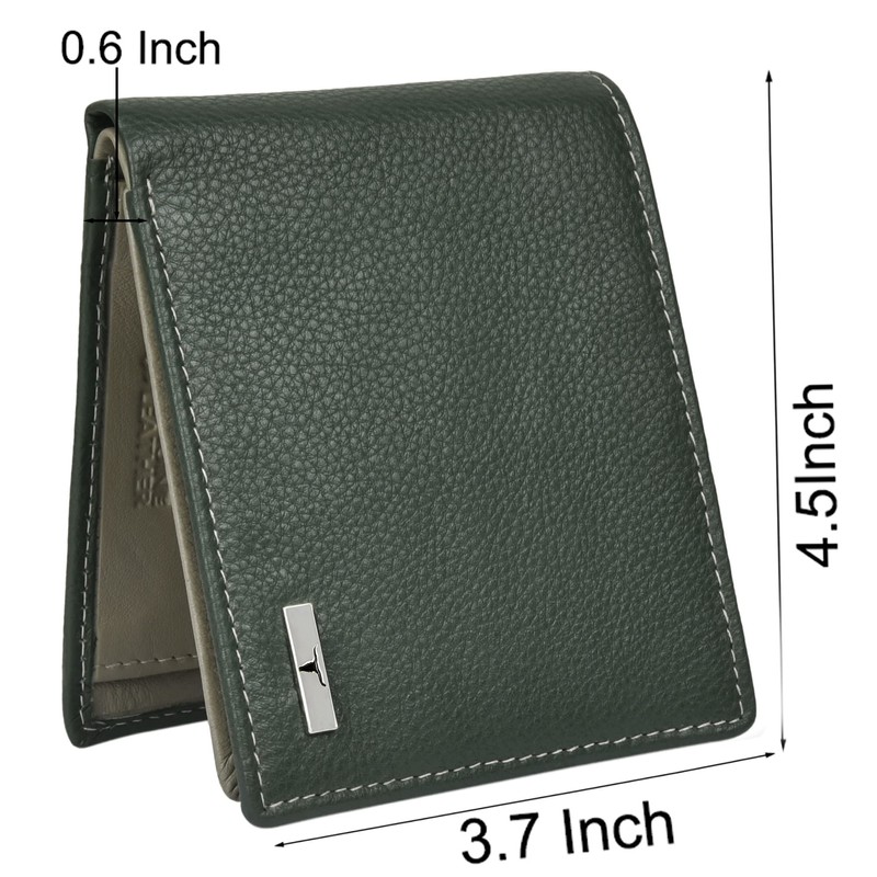 Urban Forest Kyle Two Fold Leather Wallet, Green/Grey with RFID Blocking for Men