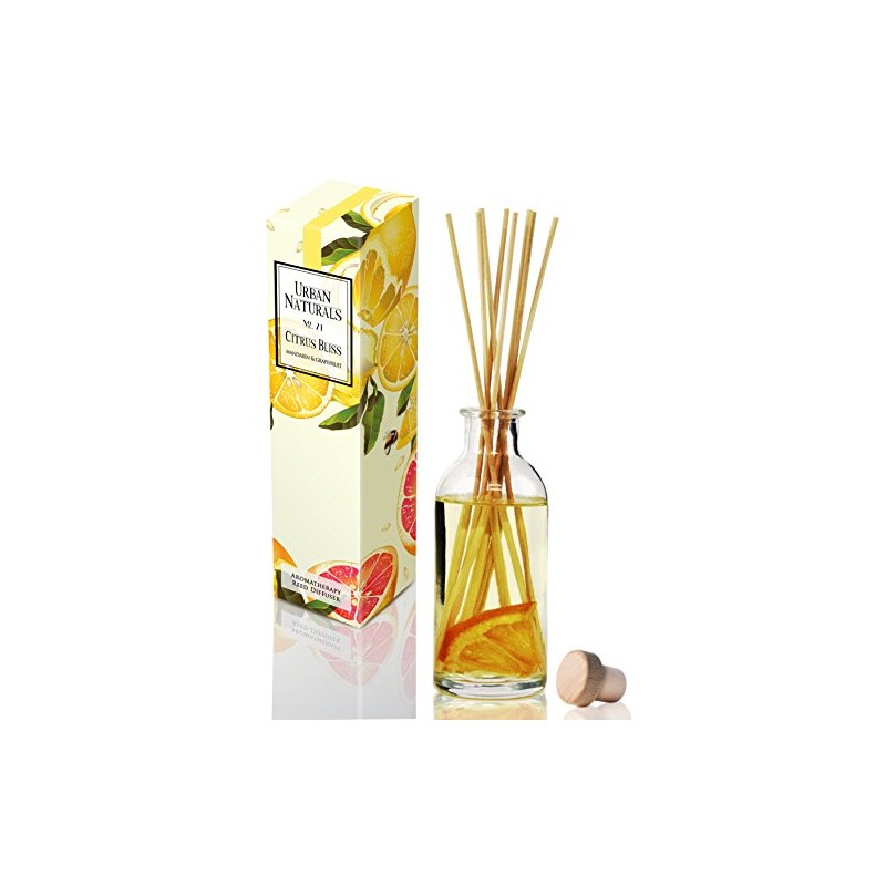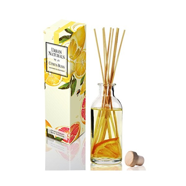 Urban Naturals Citrus Bliss Mandarin Orange & Grapefruit Scented Oil Reed Diffuser | Essential Oil Gift Set w/Real Orange! | Fresh Fragrance