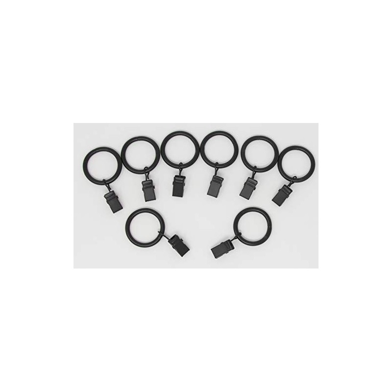 Urbanest Metal Curtain Drapery Rings with Clips, 8 Pk, 1-inch Inner Diameter, Fits up to 3/4 Inch Rod (Matte Black)
