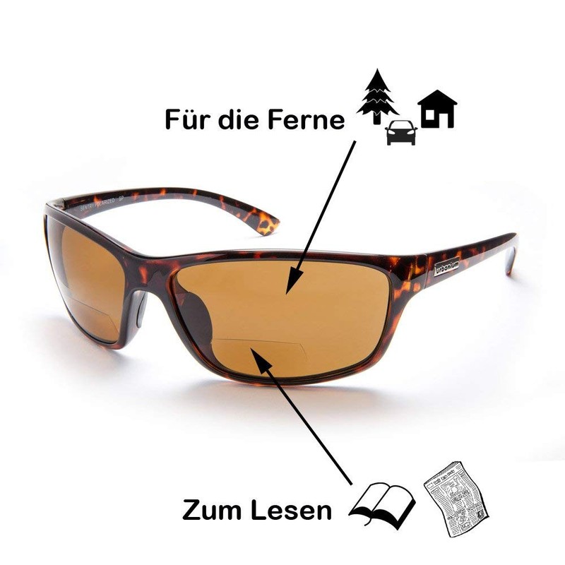 Urbanium Eyewear London - Sporty Sunglasses in Havana Brown with Brown Lenses - Polarising with Inconspicuous Reading Window at the Bottom of the Lenses Available in Various Strengths, havane