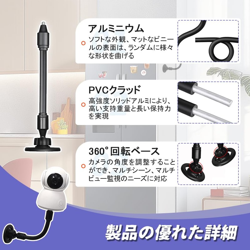 - 【Flexible Adjustment】360° omnidirectional rotation function, no need to drill holes or screws to fix, you can adjust the angle of the camera at any time, meet your multi-scene and multi-view monitoring needs