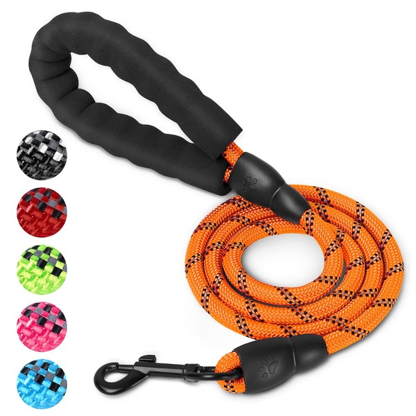 UrbanX Heavy Duty Dog Leash with Comfortable Padded Handle and Highly Reflective Threads for Golden Retriever Corgi and Other Large Mixed Breed Dogs (4FT, Orange)