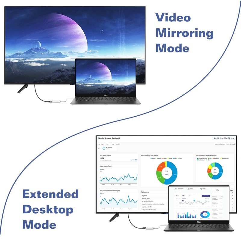 Mirror Mode & Extend Mode: Mirror Mode: Makes your holiday photos and favorite films so much more interesting and enjoyable on the big screen! Extended Mode: Works like a charm for multitasking. Premium HD Video & Audio Experience: HDCP, 36-bit Deep Color, 3D and uncompressed/compressed audio formats. HD transmission for an all-in-one A/V solution. Innovative Design: For Maximum Usage: Sturdy Nylon Braided Jacket: Anti-aging, anti-twisting, moisture protection, abrasive resistance. Reliable Material: Durable & Unique Design: Lightweight Alu-alloy Shell: Greater portability and convenience. Corrosion-resistant, extraordinary durability, accurate data transmission. Compatible With: MacBook Pro 2012-2013 Apple MacBook Air (BEFORE 2018)/Pro (BEFORE 2016), iMac (BEFORE 2017), Mac Pro, Mac Air For New MacBook Pro/Air, please consider USB-C to HDMI Adapter. Microsoft Surface Pro/Pro 2/Pro 3/Pro 4/Pro 5/Pro6, Surface Laptop/Laptop 2 (NOT Surface 2), Surface 3 (NOT Surface), Surface Dock, Surface Book(NOT Surface Book 2), Surface Studio Lenovo ThinkPad Helix, X230, L430, L530, T430s, T430, T530, W530 Dell XPS 13 (BEFORE 2016) Notice: NOT compatible with Thunderbolt 3 (Type-C). Transmission: NOT bi-directional (Only from a Mini DisplayPort/Thunderbolt/Thunderbolt 2 to an HDMI). Audio: System Preferences → Sound → Output. Change the audio output from your laptop to TV or other devices.