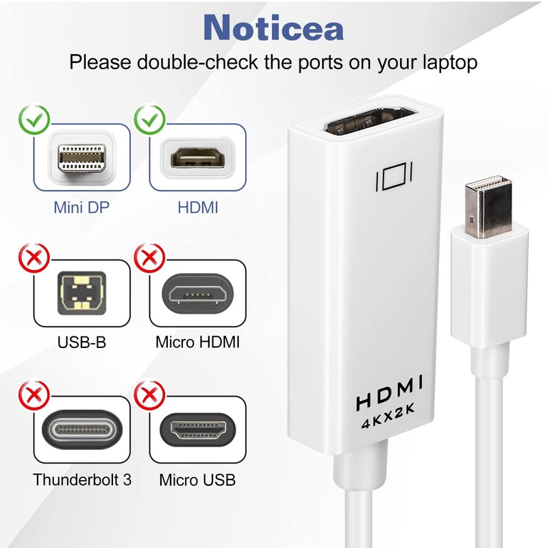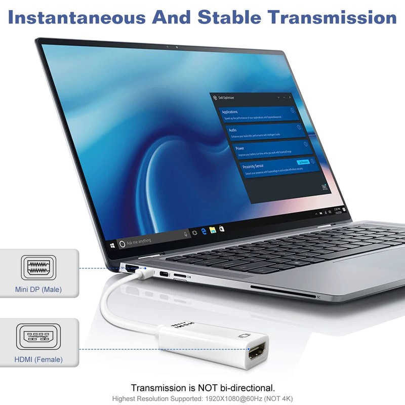 • 【High Quality Transmission】This 0.65ft Mini DisplayPort (thunderbolt) to HDMI Adapter allows you to connect laptops with Mini DP ports to external displays/TVs/Projectors, which works perfectly whether you're delivering presentations or watching 1080P HD videos on a larger screen with your laptop.