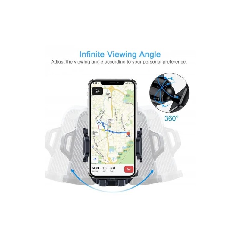 - 🚘Adjustable Any Viewing Angle: Car phone holder stay at your air vent, not block your driving sight. Windshield dashboard phone holder with a telescopic arm can extend between 4-6.6 inch(10-16cm). Just pull or push that adjusts devices get the right length without manual rotation of the nut. 360-degree rotation and 270 degree up or down support mobile phone vertical, horizontal using, allow different angle for you to get perfect sight.