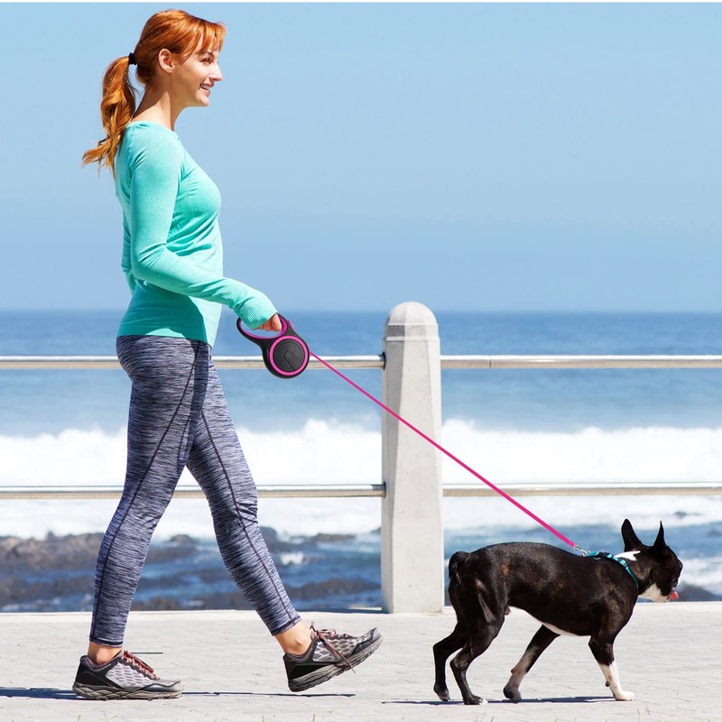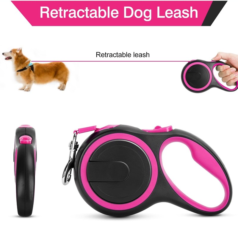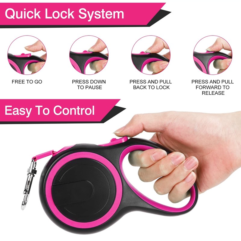 UrbanX Retractable Dog Leash for German Shepherd, Rottweiler, Pitbull and Other Large and Medium Dogs with Anti-Slip Handle. 24ft Strong Nylon Tape; One-Handed Brake, Pause, Lock - Pink