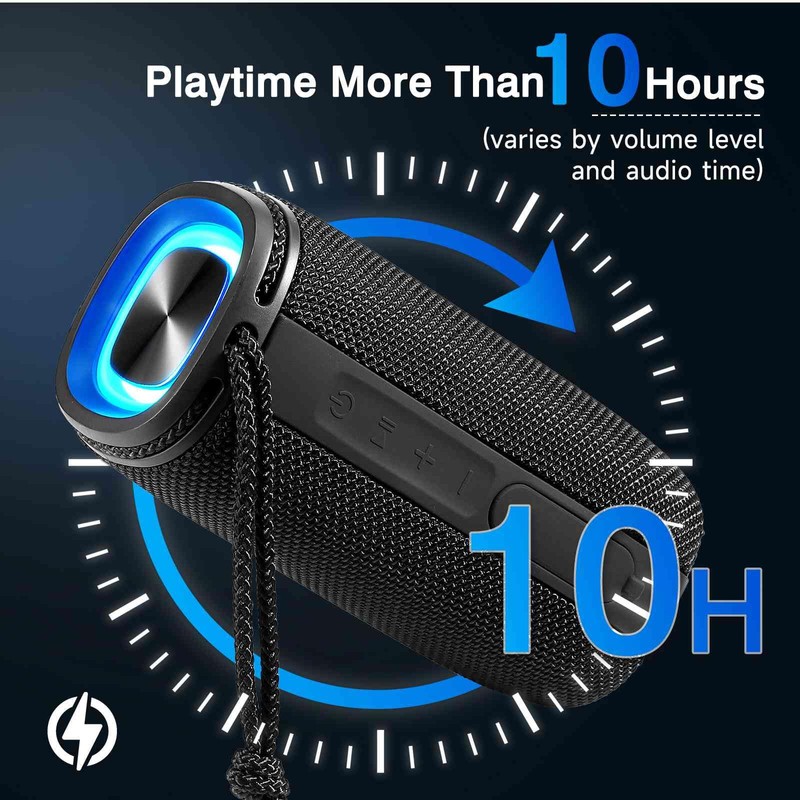 - Long-lasting Playtime & Extended Bluetooth Connectivity : Enjoy uninterrupted music with our wireless Bluetooth speaker that offers up to 10 hours of playtime per charge. Thanks to the advanced Bluetooth 5.3 technology, you can stay connected up to 100 feet away from your device. The speaker also features multicolor lights that can be turned off to conserve battery life.Please note, actual playtime may vary based on volume level, audio content, and usage.