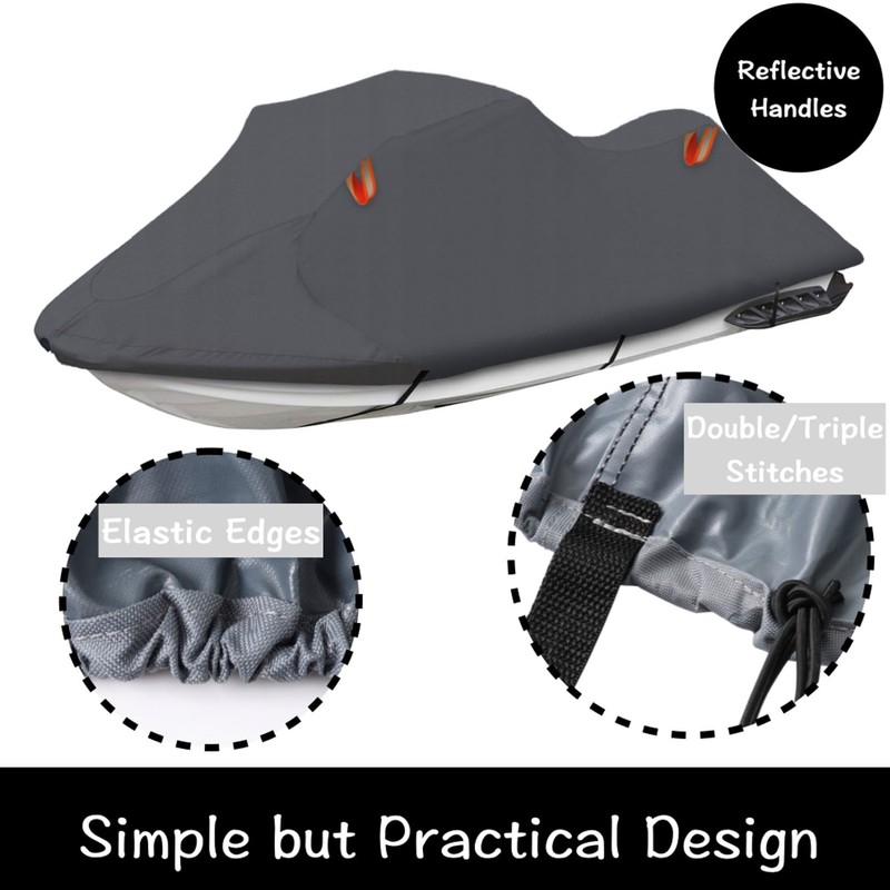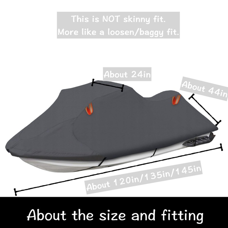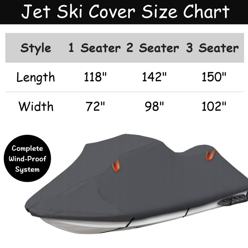 Urby Trailerable Jet Ski Cover, Waterproof 600D Super Duty Oxford PWC Cover with Enhanced Wind-Proof System, Universal Fit Compatible with Yamaha SeaDoo and Other Brands.3 Seater 145"
