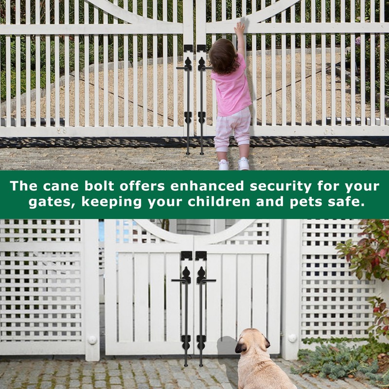 - [Sleek and Elegant]The cane bolts for gates seamlessly complements the aesthetic of any gate design. Add a touch of sophistication to your door. Simultaneously prevent unauthorized access to ensure the safety of your property.