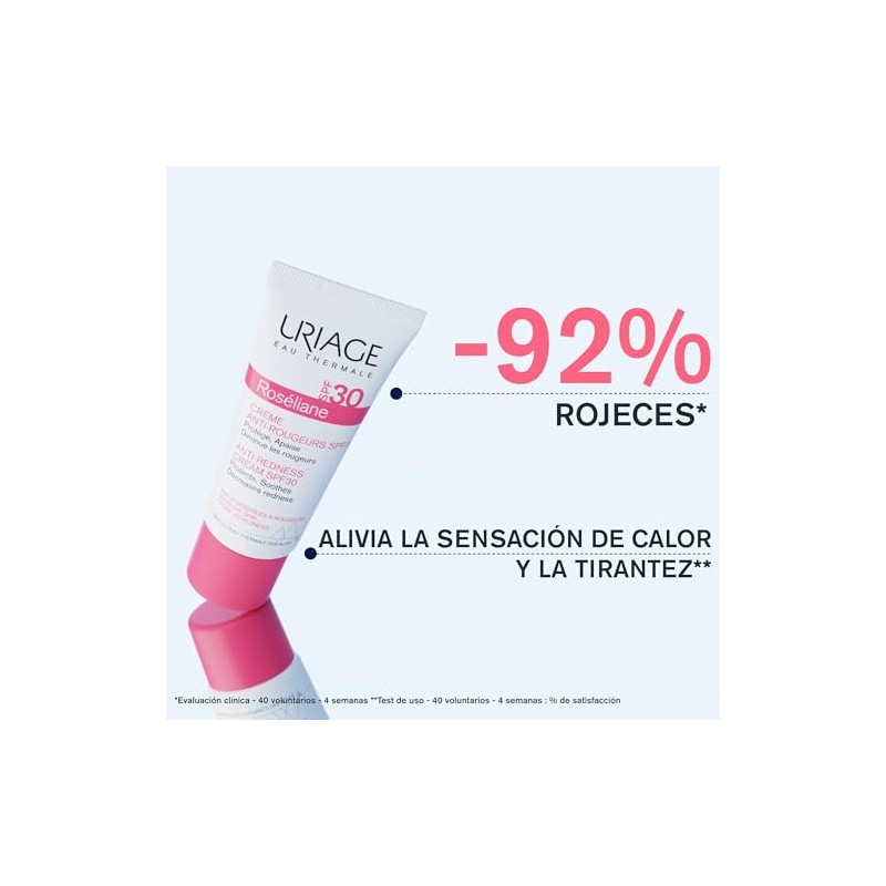 🌟 ⭐ Uriage Roseliane Crema facial anti-rojeces SPF30 hidratante 40ml - con Extracto de Ginseng y Algas, Cubre el Enrojecimiento, Proporciona una Acción Calmante de Larga Duración. Aroma Floral y Afrutado - Para Pieles Sensibles - No Comedogénico ⭐ 🌟