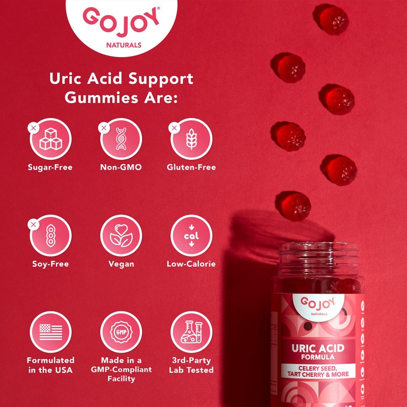 GOJOY NATURALS Uric Acid Support Formula for Adults - Tart Cherry Gummies with Celery Seed Extract - for Men and Women's Joints Kidneys and More - Soy & Sugar Free