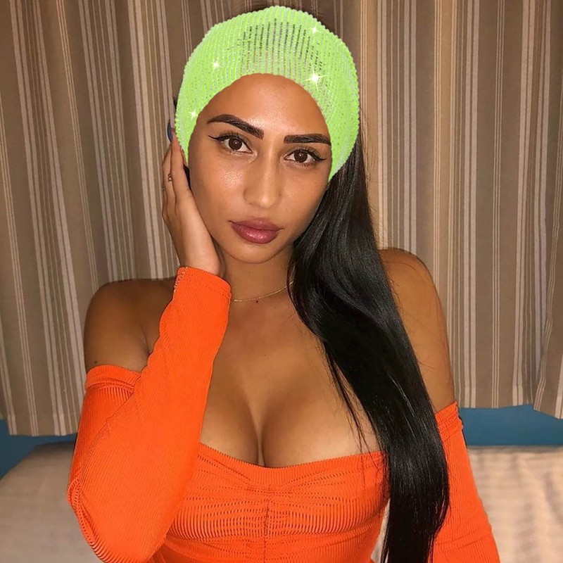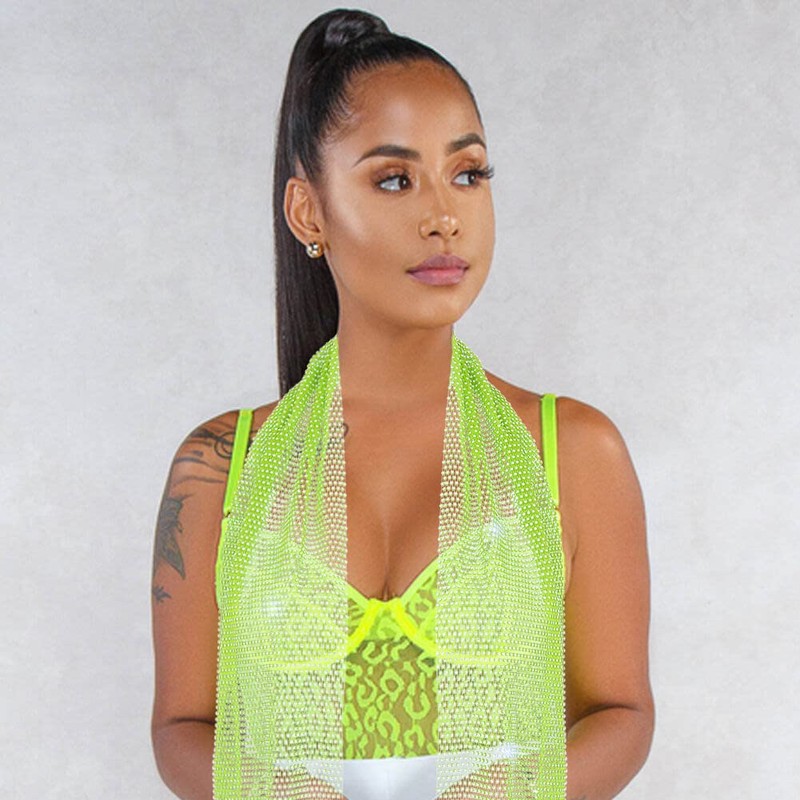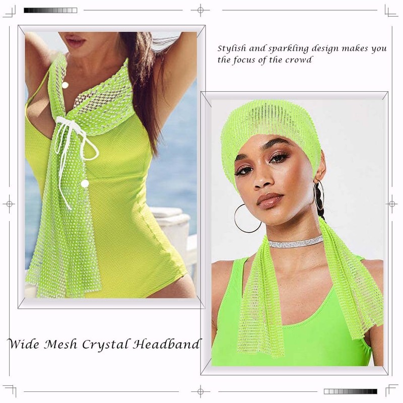 Urieo Mesh Rhinestone Headbands Crystal Wide Hairbands Elastic Turban Kerchiefs Nightclub Hair Accessory for Women and Girls (fluorescent green)