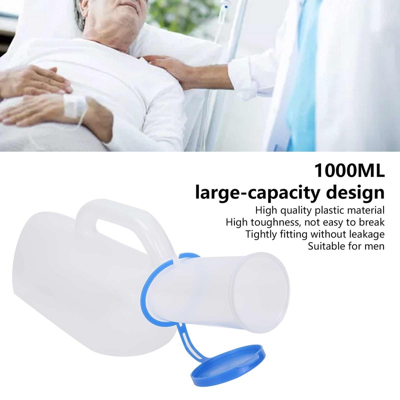- Large Urine Bottle The urine bottle for men has a large capacity of 1000ml, the urine bottle is enough for one day, the urine bottle for the elderly is suitable for home or travel use, the patient urine bottle offers you convenience. The urinals for men are suitable for the elderly, people or travellers who are on the go.