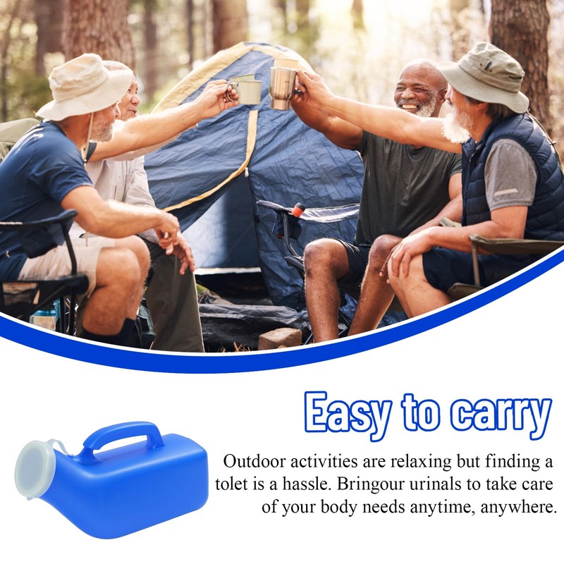 - Portable and Convenient: Lightweight and compact, this pee bottle for men is designed for on-the-go use; Its ergonomic handle makes it easy to carry, ideal for car trips, camping, or emergency situations