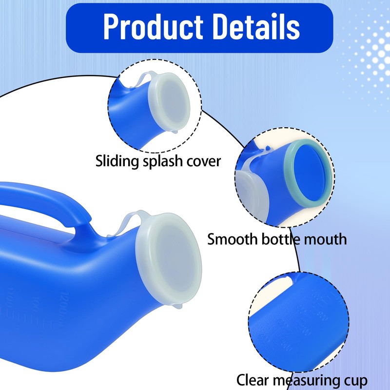 - Spill-Proof and Secure: Equipped with a tight-fitting lid, this male urinal bottle ensures no spills or leaks during transport; The non-slip edges provide a firm grip, while the wide base offers stability on flat surfaces