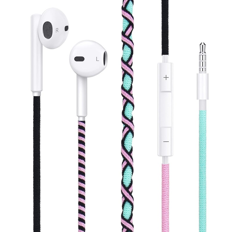 URIZONS Wired in-Ear Headphones with 3.5mm Jack - Colorful Braided Cable, Built-in Mic, Adjustable Volume, Sweat & Dirt Resistant, Tangle-Free, Compatible with All 3.5mm Devices