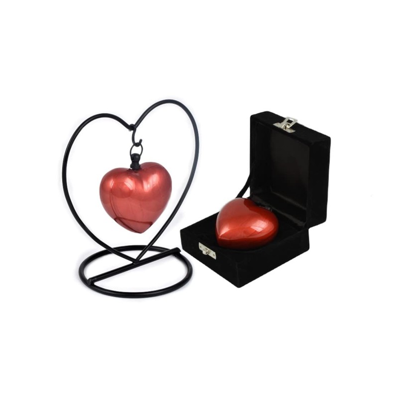 UrnsWithLove Cremation keepsake urn for ashes Heart in my heart Exclusive Protected Design With Box & Stand (Red)